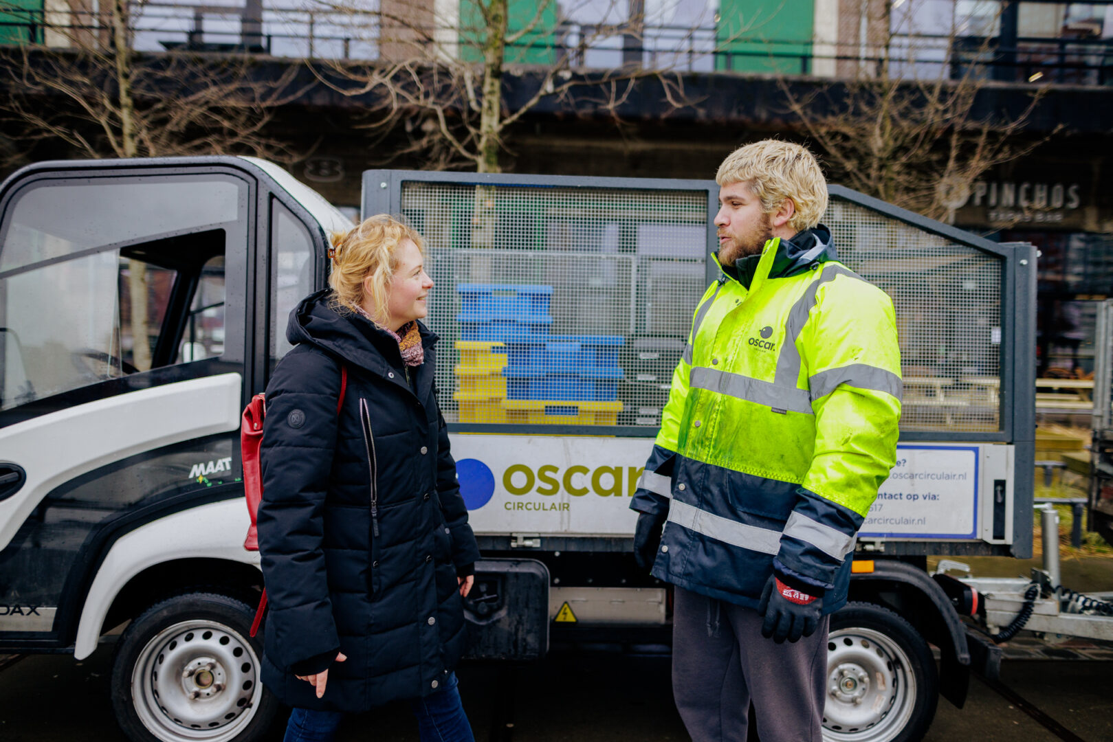 Oscar Circulair verzamelt achter de deur bij bedrijven afval in en zorgt daarbij ervoor dat er zo goed mogelijk gescheiden wordt. Hiermee richten zij op het verduurzamen van de afvalketen en het herstel van de relatie tussen de afvalontdoener en verzamelaar.